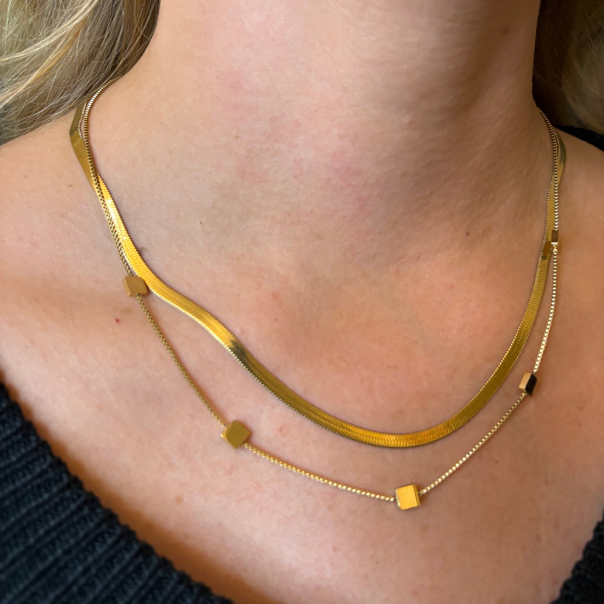 With small polished square links that glisten and shine in the light, wear alone for a refined, minimalist look or layer effortlessly with other necklaces.