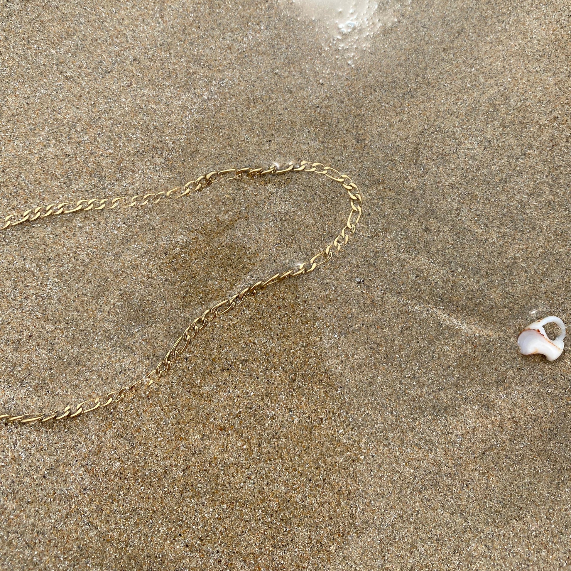 A modern classic, The Elizabeth’s flat Figaro chain pairs effortlessly with any piece. Perfect for layering or wearing solo for understated polish and everyday elegance.