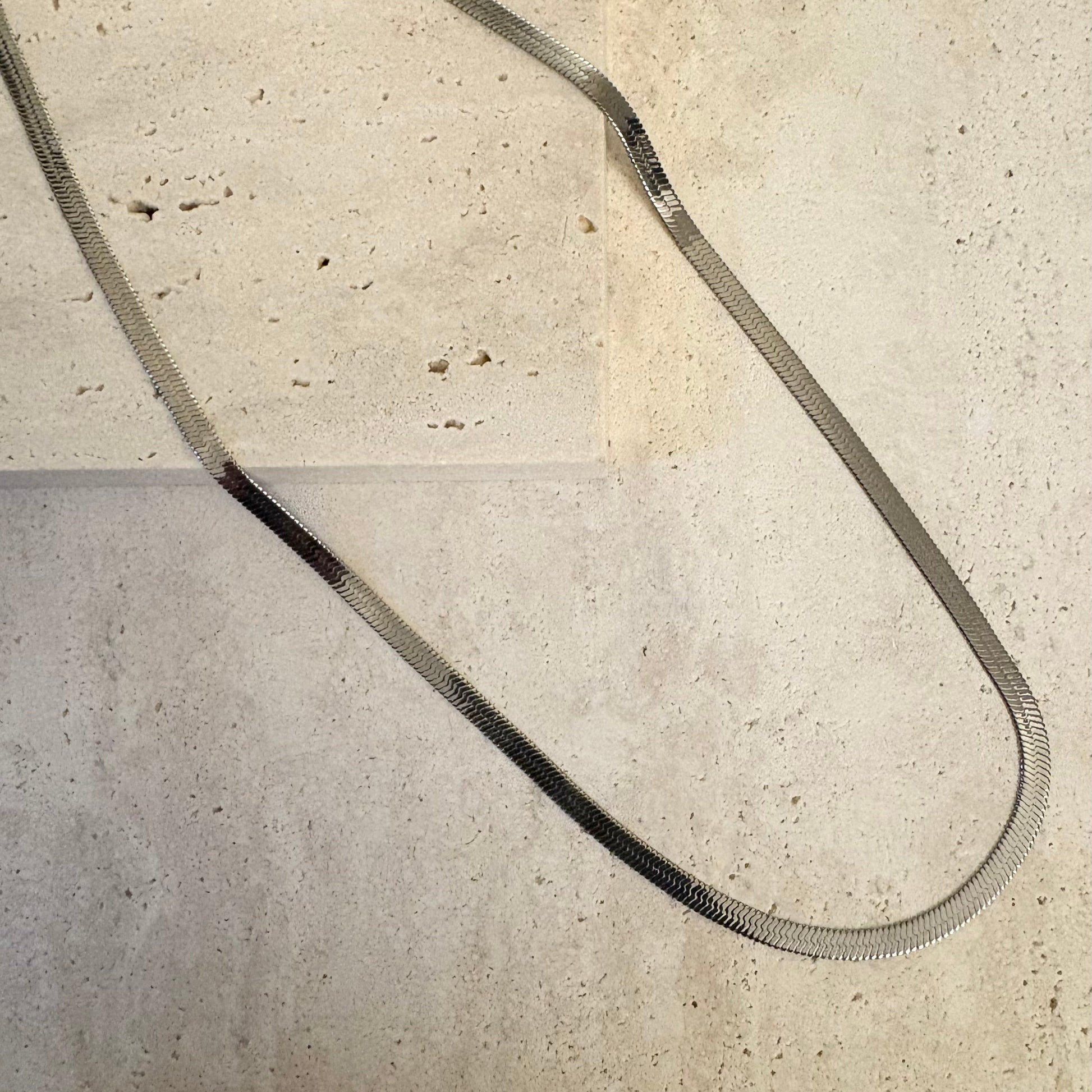 A modern take on a classic, The Emily features a slightly wider slinky snake chain for subtle presence. Its polished finish makes it versatile enough to wear alone or layered with other chains.