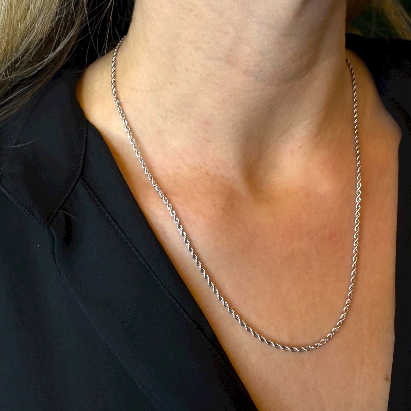 With delicate twisted links that catch the light, wear alone for understated elegance or layer with other necklaces for a curated, luminous look.