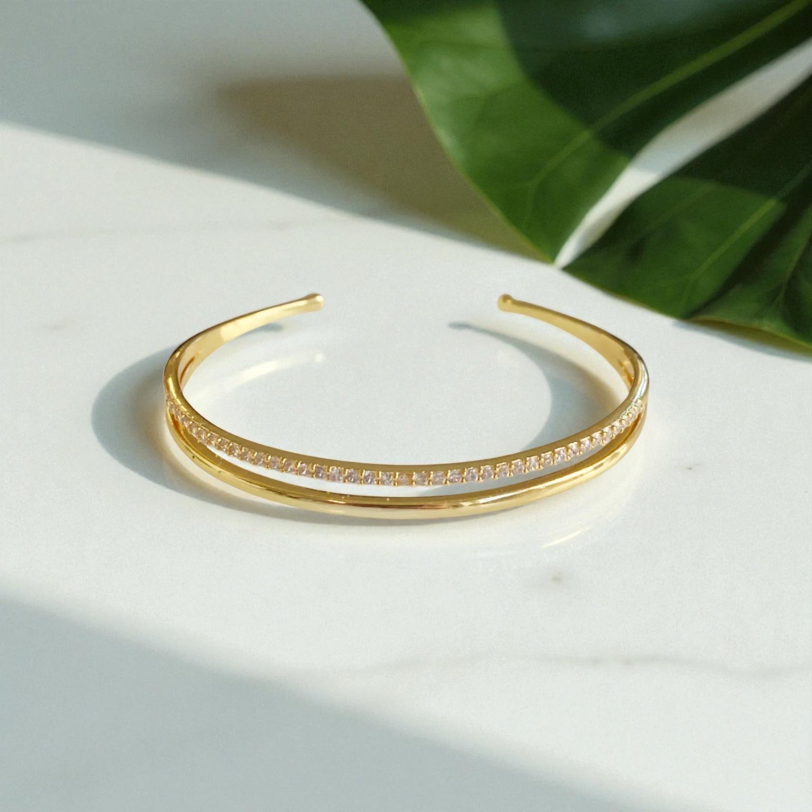 The Olivia combines subtle sparkle with modern elegance. Two fine rows of crystals catch the light beautifully, making it perfect alone or stacked with other bracelets for a refined, curated look.