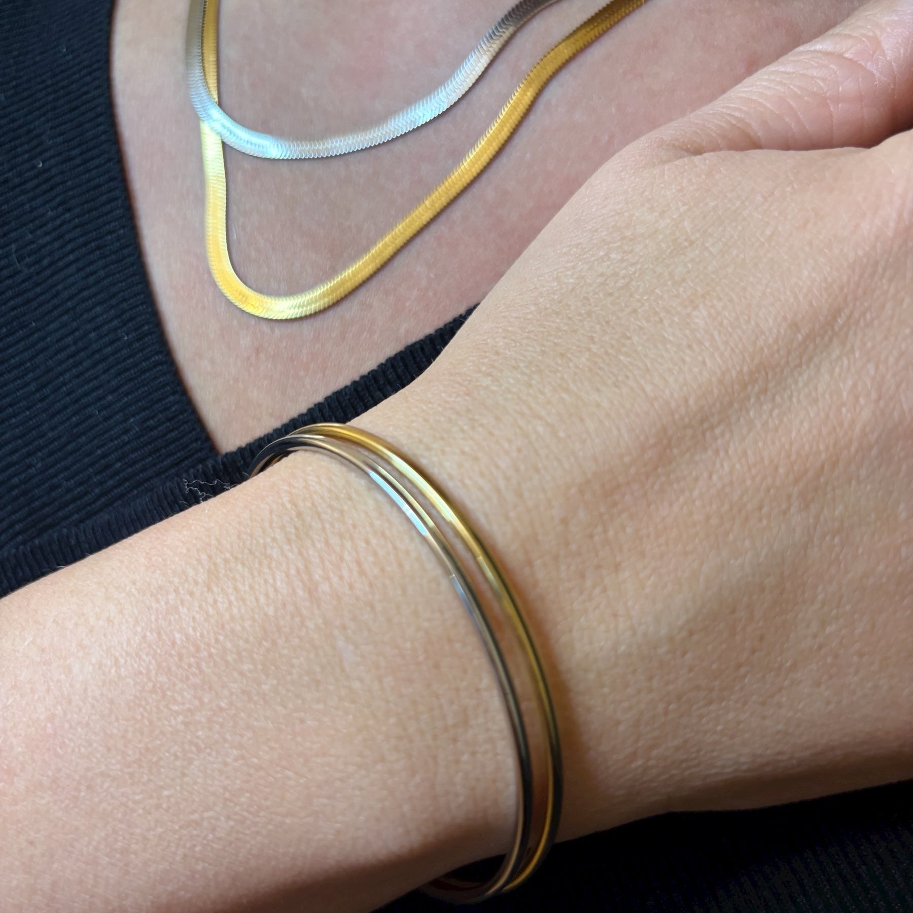 Clean, minimal, and timeless, The Penny is a refined bangle designed for effortless everyday wear. Subtle yet elegant, it’s the perfect piece to wear solo or layered for an understated, polished look.